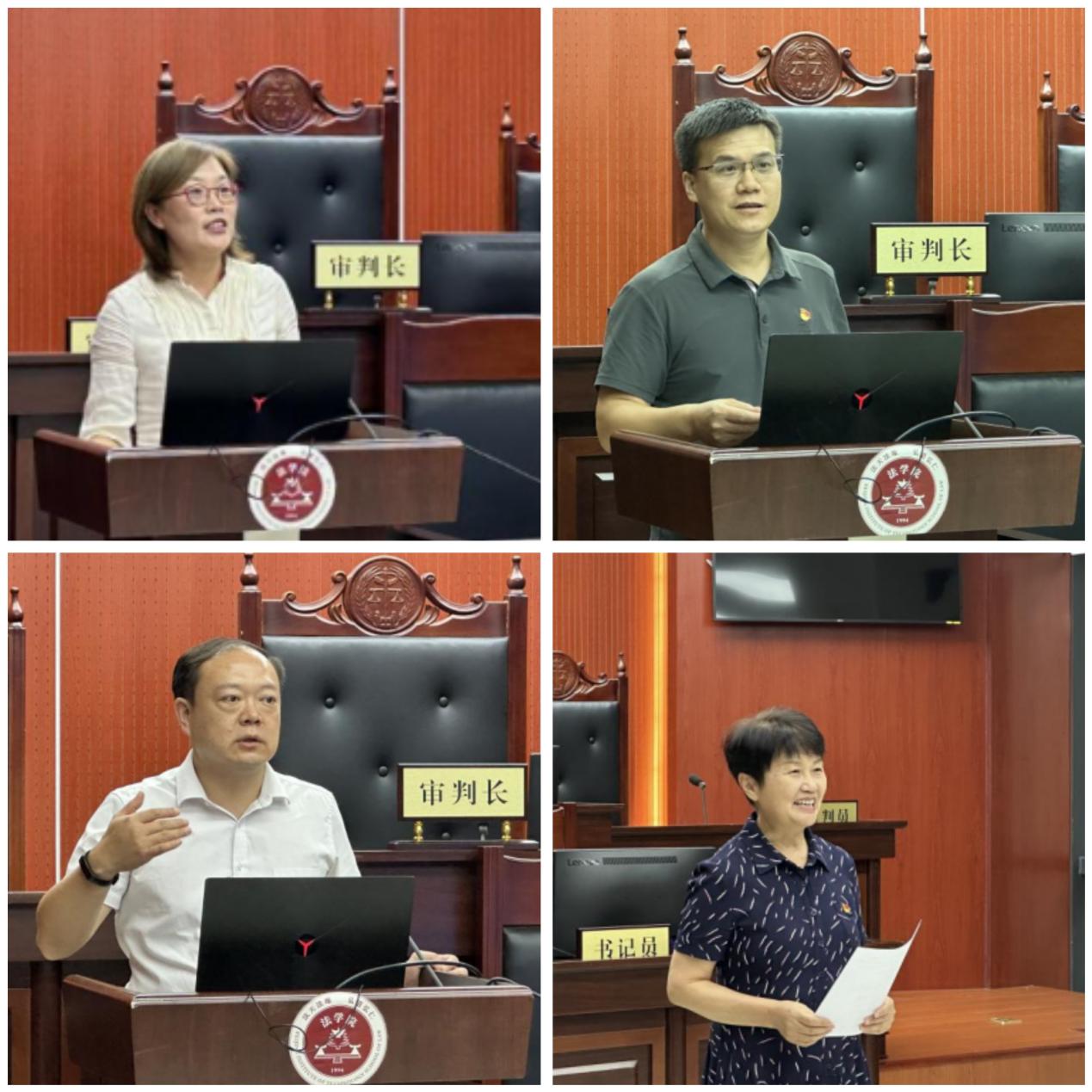 此次活动共分为三个部分。第一部分为党史学习教育。首先,马茹向大家介绍了“赤色”“法槌”的内涵以及本次活动的意义,强调了生态文明是人民群众共同参与、共同建设、共同享有的事业。党的二十大报告明确了我国新时代生态文明建设的战略任务,总基调是推动绿色发展,促进人与自然和谐共生。不谋万世者,不足谋一时,我们要为子孙后代计,为长远发展谋。我们要以生态文明思想为引领,努力建设人与自然和谐共生的现代化,为共建地球生命共同体贡献中国智慧和力量。介思娇进一步向大家详细介绍了二十大报告中的生态环保理念的内涵。党的二十大报告提出,推动经济社会发展绿色化、低碳化是实现高质量发展的关键环节。环境保护与每一个人息息相关,党员干部作为各项政策的贯彻者、推动者、落实者,要以身作则、勇于担当,进一步提高思想认识,牢固树立环保理念,发挥示范引领作用。