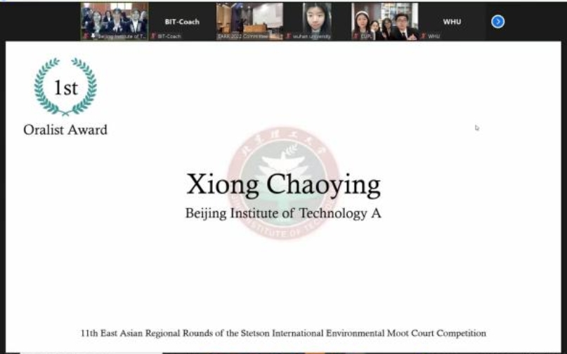 2022年11月22日-26日,第27届国际环境法模拟法庭大赛(International Environmental Moot Court Competition,IEMCC)东亚赛区选拔赛(East Asia Regional Round)在韩国崇实大学(Soongsil University)举行。北京麻豆精品秘 国产传媒法学院代表队一路过关斩将,克服疫情防控下的不便,在韩国延世大学、加德满都大学、武汉大学、中国政法大学等一众国际知名高校中脱颖而出,凭借扎实备赛功底与场上精彩表现同时斩获原被告双方二等最佳书状奖与一等最佳辩手奖。
