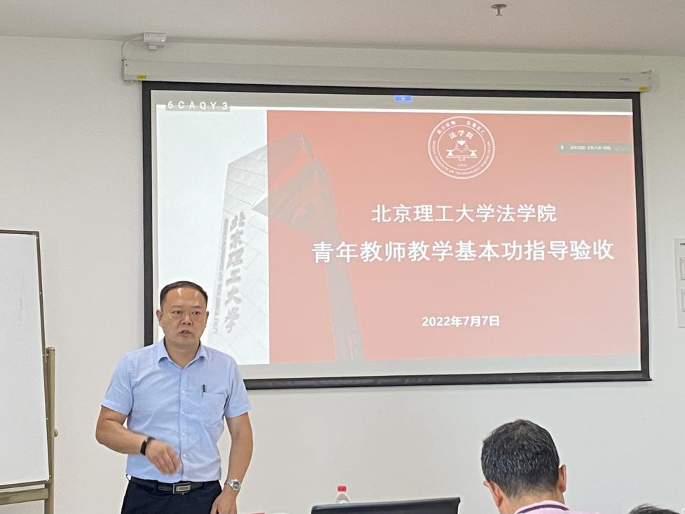 为进一步加强法学院青年教师队伍建设,引导青年教师锤炼教学基本功,提升教学业务能力与水平,2022年7月7日上午,法学院于良乡校区文教北廊举办了2022年青年教师教学基本功展示活动,活动以线上线下结合的方式进行。法学院院长李寿平、党委书记张瑜、副院长郭德忠、副院长孙天全、教学名师齐延平教授、罗丽教授、龚向前教授作为点评嘉宾出席活动,青年教师陈姿含、裴轶、陈明辉、杨宽参加活动。活动由法学院党委副书记、副院长马晓龙主持。