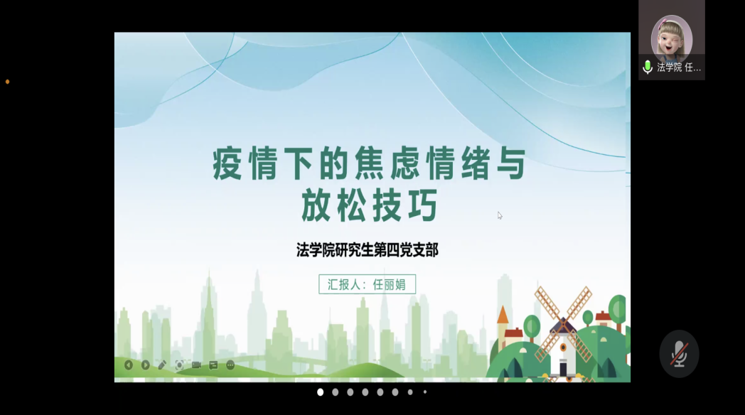 最后,由法学院非法本法硕班心理委员任丽娟同学开展疫情封校背景下的心理健康教育。