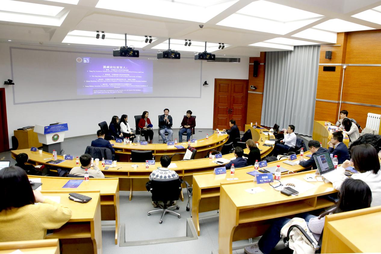 研讨会最后一个环节为圆桌论坛,由中南财经政法大学法学院雷益丹副教授主持。中国航天标准化研究所室主任泉浩芳、中国科学院国家天文台副研究员杨志涛、中国政法大学法学院讲师唐雅、中国民航大学法学院讲师聂晶晶作为发言人,分别从技术、法律的视角就空间交通管理、空间碎片治理等重要问题进行了深入讨论。