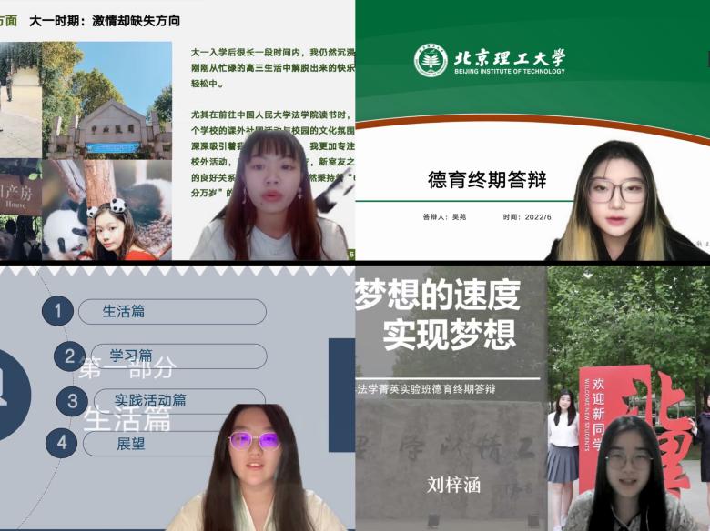在班主任致辞环节,孟强老师提到,作为法学菁英实验班的同学,大家是幸运的,能够有机会在北理这样的理工强校和人大这样的社科强校分别进行两年的学习,体验不同学校的教学风格与学习氛围。作为2018级的同学,大家也是幸运的,尽管受到了疫情的影响,但也在两个学校享受到了丰富多彩的大学生活,也能够有机会走出校园,参与各种社会活动。四年结束,不管大家的选择如何,法学菁英实验班的每一位同学都认真地度过了自己的大学时光,也用自己辛勤的汗水捍卫了班级的尊严,没有辜负国家和两校的培养与期望。
