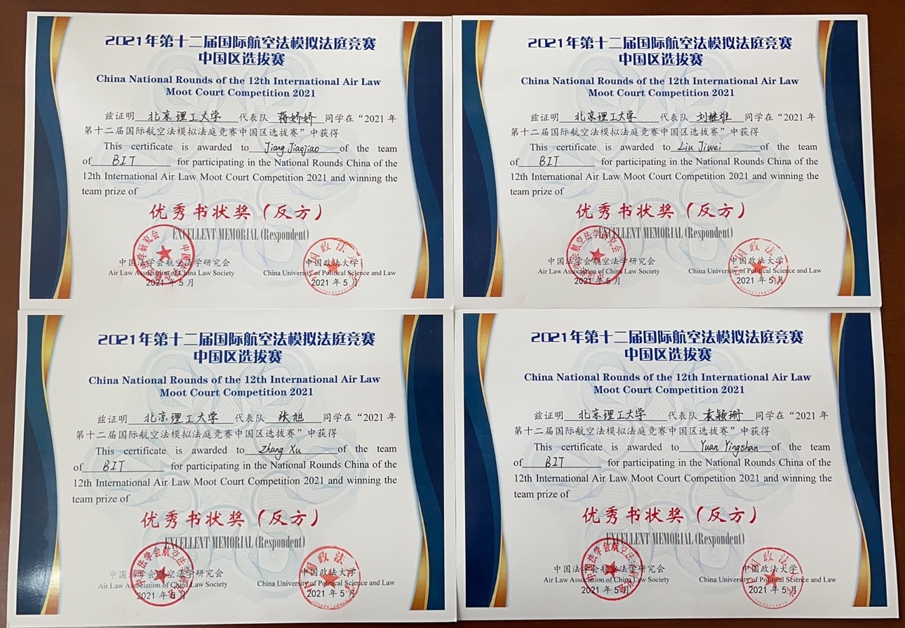 北理工法学院在第十二届国际航空法模拟法庭竞赛中获得佳绩