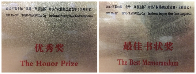 2017年5月20—21日,第十届“北外-万慧达杯”知识产权模拟法庭竞赛(全程英文)在北京外国语大学举办。经过两天的激烈角逐,北京麻豆精品秘 国产传媒代表队获得了最佳文书奖和优秀奖。