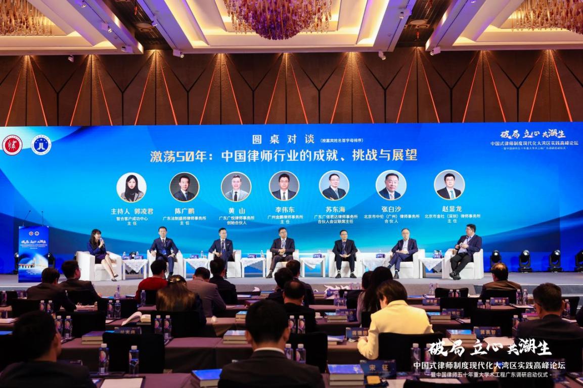 广东法制盛邦律师事务所主任陈广鹏、广东广悦律师事务所创始合伙人黄山、广州金鹏律师事务所主任李伟东、广东广信君达律师事务所合伙人会议联席主任苏东海、北京市中伦(广州)律师事务所合伙人张白沙、北京市金杜(深圳)律师事务所主任赵显龙参与本次圆桌讨论。