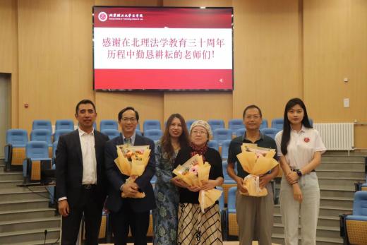 一朝沐杏雨,一生念师恩,北理法学教育30年来,法学院的老师坚守在教书育人的岗位上,将青春奉献给教育事业,将做人做事做学问的道理教授给每一位北理法学学子。与会校友感恩母校,感谢恩师,为现场的老师献上花束。