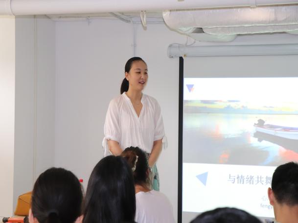 本期沙龙的主讲人是心理健康教育与咨询中心的冯愉涵老师,在正式开始前,她了解各位同学的期待,并谈到她对于讲座主题的理解。随后,冯老师让同学们用一个词汇描写当下的情绪,同学们说到“期待”、“焦虑”和“平静”等。沙龙开始,她让同学们拿出事先准备好的气球,一边回想着一个希望在沙龙中讨论的负面情绪,一边吹气球。接下来,她向大家介绍什么是“情绪”,使得同学们初步了解情绪的内涵。